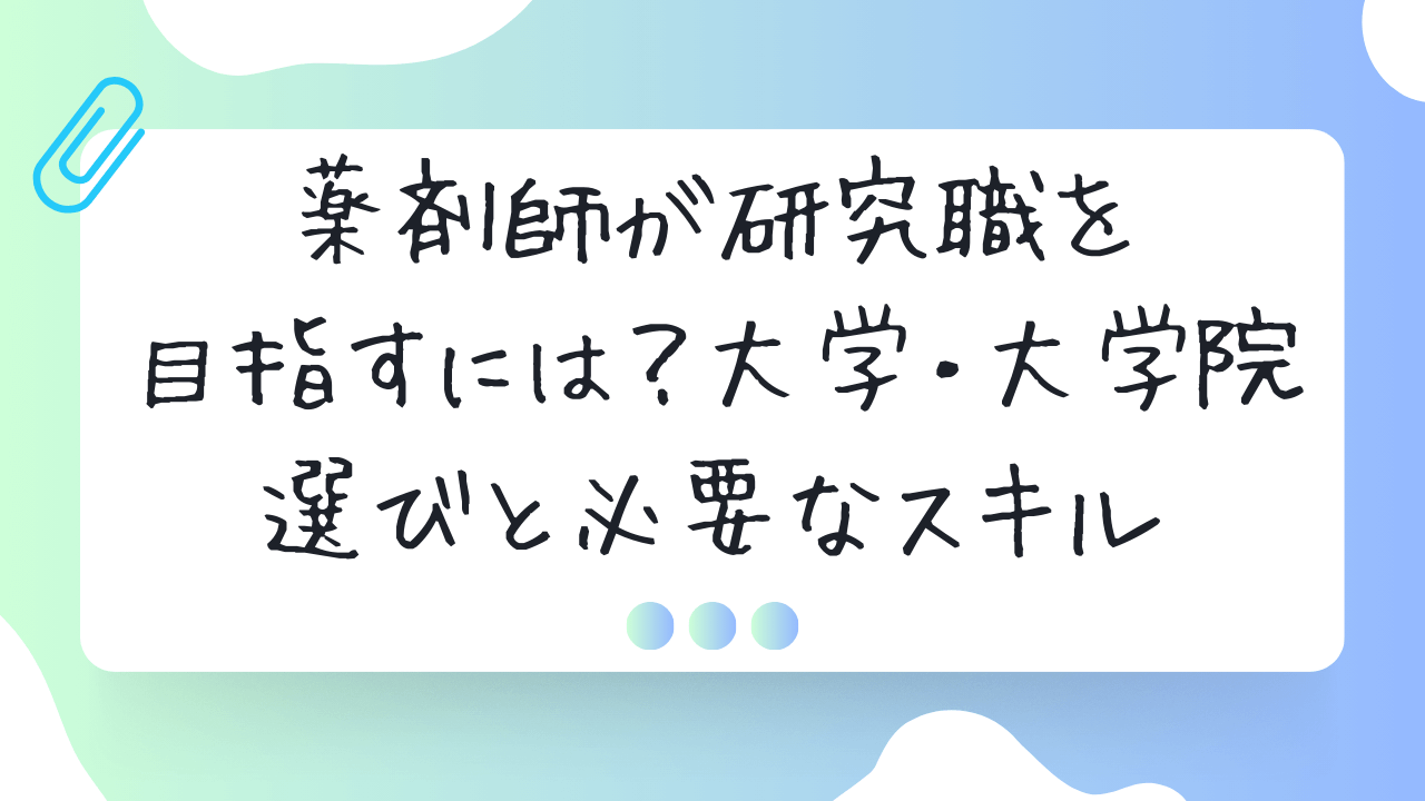 この記事では、薬剤師が研究職を目指すために必要な大学・大学院の選び方、求められるスキル、そしてキャリアパスの具体例までをわかりやすく解説。